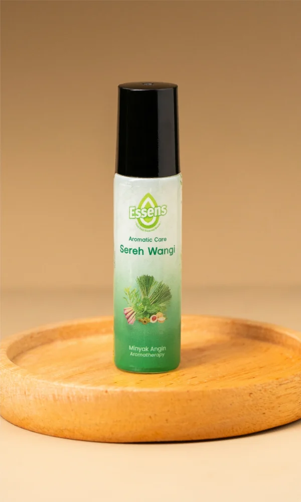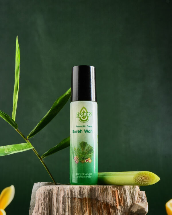 Roll On Aromatherapy dengan aroma Sereh Wangi, berbahan utama minyak atsiri mentha piperita (peppermint oil) dan minyak atsiri sereh wangi (citronella oil) yang alami, bermanfaat untuk memberikan kesegaran, membantu menghangatkan badan, meredakan gejala masuk angin, sakit kepala, perut kembung, mual, dan mabuk perjalanan, dan gatal akibat gigitan serangga.